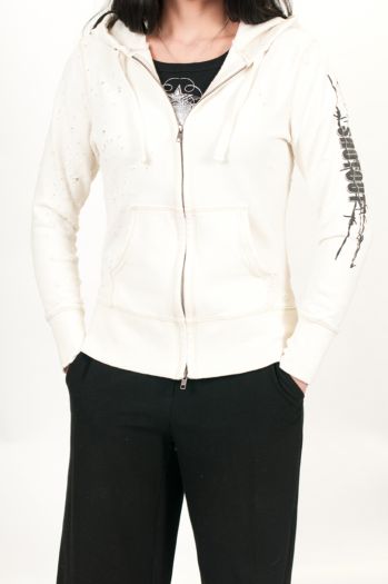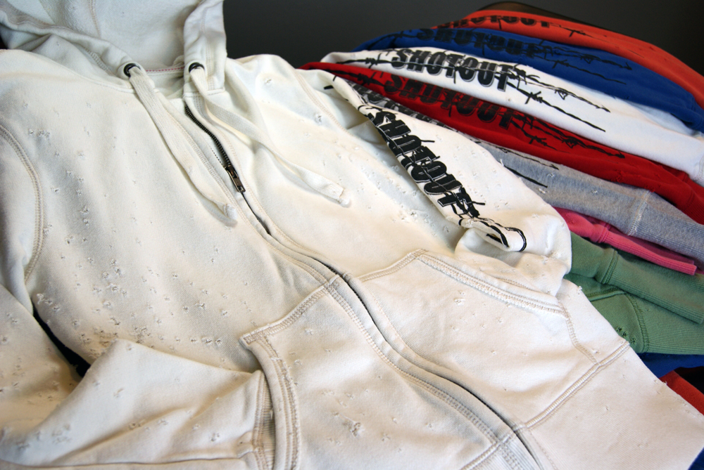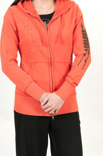 Vintage French Terry Full Zip Hoodie Shotout with Barbed Wire design.